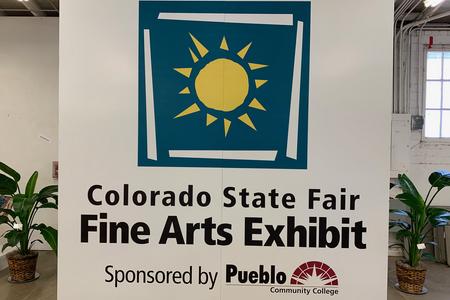 Sheryl Hutchings was proud to pose with her two paintings that were accepted into the 2019 Colorado State Fair. A budding artist at this late stage of her life, she enjoys painting and is thrilled to be getting recognition for her works.