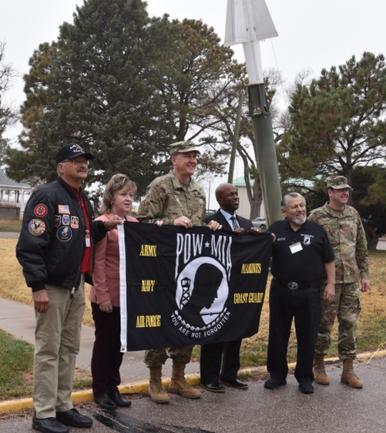 The 2019-2020 POW flag 50 State Tour started its journey at Overlook Park in Cedar Bluff, VA where a new Memorial was built in remembrance of 82,000 POW/MIA’s that are still unaccounted for. The flag, which is currently being escorted by Butch Chavez, President of Pueblo POW/MIA Memorial and Lt. Col. (Ret) John Saenz, arrived at Pueblo Chemical Depot for a photo with PCD leadership and signature from COL Cobb, Ms. Sheila Johnson and Mr. Clyde Brown, which documents the flags journey.