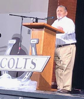 Founder/Co-Chairman Pueblo POW/MIA Memorial™ was inducted into the Pueblo South High School Alumni Foundation Hall of Fame on October 26. The ceremony and dinner was from 5 to 10 p.m. at Pueblo Community College. Ten of his fellow classmates, including Ruth Power Taravella, an inductee in 2018, joined him in celebrating this honor. On Friday, October 25, Butch spoke at the pep assembly in the South High School auditorium.